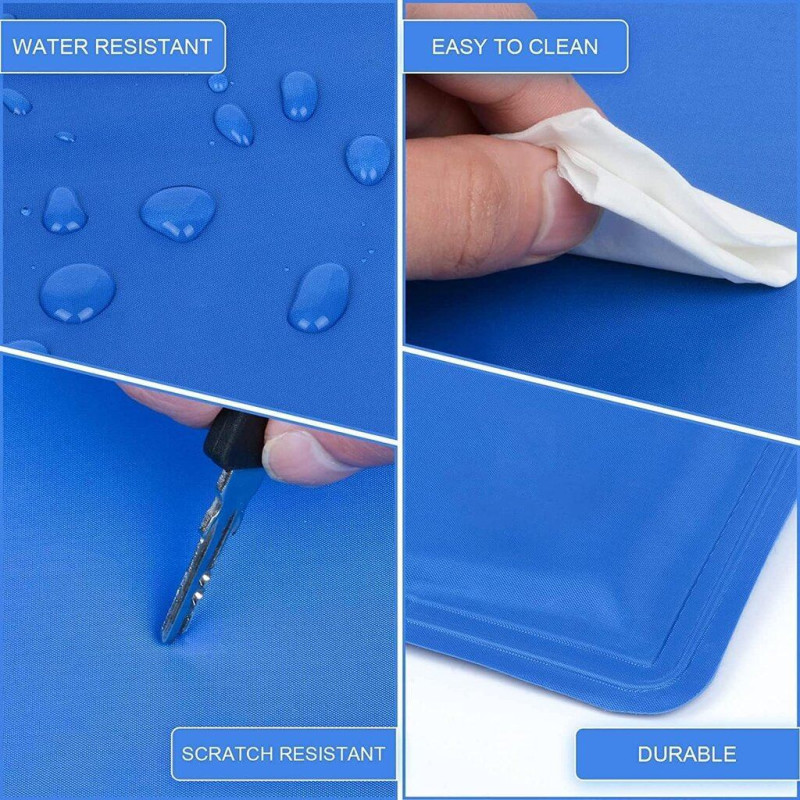 Desmitiem materiālu ar atkārtotiem testiem, izvēlēts mājdzīvniekiem izmantot polimēru gelu, videi draudzīgu poliestera tafta auduma partneri, lai panāktu labāku efektu vēss, bet ne ledus!