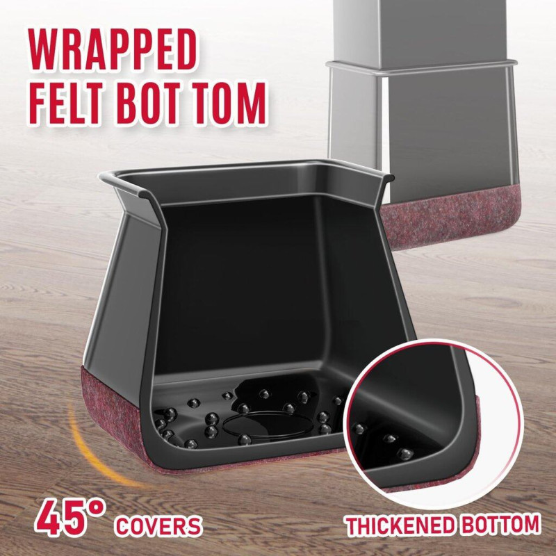 Izvairās no skrāpējumiem un samazina troksni: Mūsu krēslu kāju aizsardzības vāciņu pamatnes filca pārklājuma laukums ir lielāks nekā citiem tirgū pieejamiem produktiem, to var izmantot slīpām mēbeļu kājām un labāk aizsargāt grīdu. Ar mūsu krēslu kāju grīdas aizsardzības vāciņiem jūs varat viegli stumt smagas mēbeles, un tie samazina troksni.