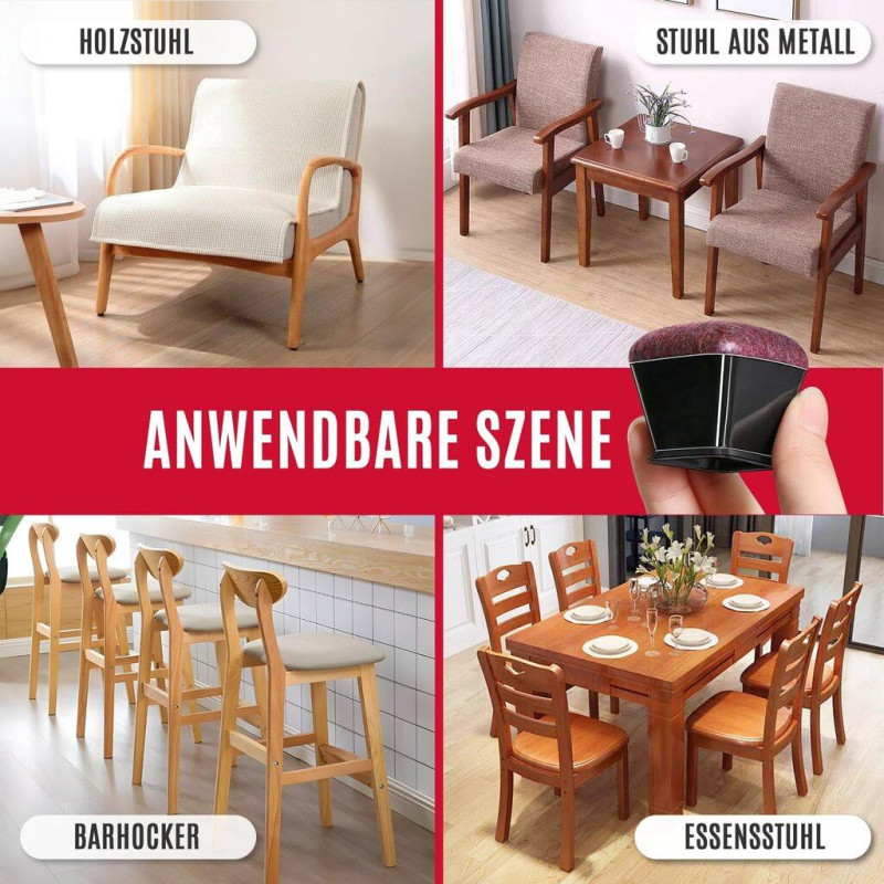 Piemērojamais scenārijs: Piemērots dažādām kvadrātveida mēbeļu kājām: Piemērotas virtuves krēsliem, terases krēsliem, ēdamistabas krēsliem, bāra krēsliem, kumodes, tāfelēm, rakstāmgaldiem utt. Silikona materiāls ir izturīgs pret netīrumiem un ūdeni.