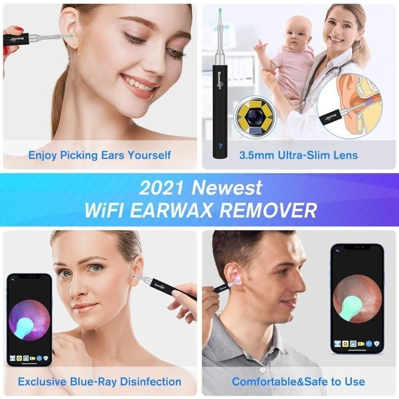 Wi-Fi endoskops: jaunākajā bezvadu "viss vienā" endoskopā ir izmantots jaunākais īpaši plāns objektīvs ar 3,5 mm diametru, tas ir aprīkots ar 5 spilgtiem baltiem LED indikatoriem un 1080P HD auss kameru, ko var viegli un ērti vadīt pa apgaismotu medicīnisko ausi. Izvēlieties ausu kanāla vietu bungādiņā un uzņemiet reālistiskākus fotoattēlus vai ierakstītus videoklipus.