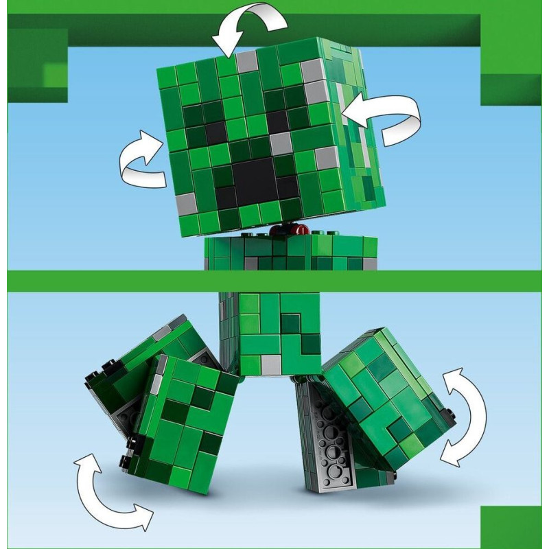 • Paslēptais pārsteigums – noņemiet LEGO® Minecraft® Creeper™ figūriņas galvas priekšpusi, lai atklātu dobumu, kurā atrodas pirmās paaudzes Creeper minifigūra un TNT elements.