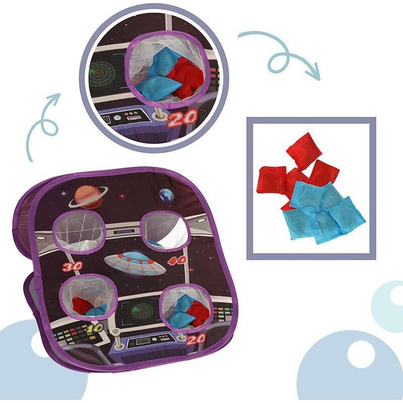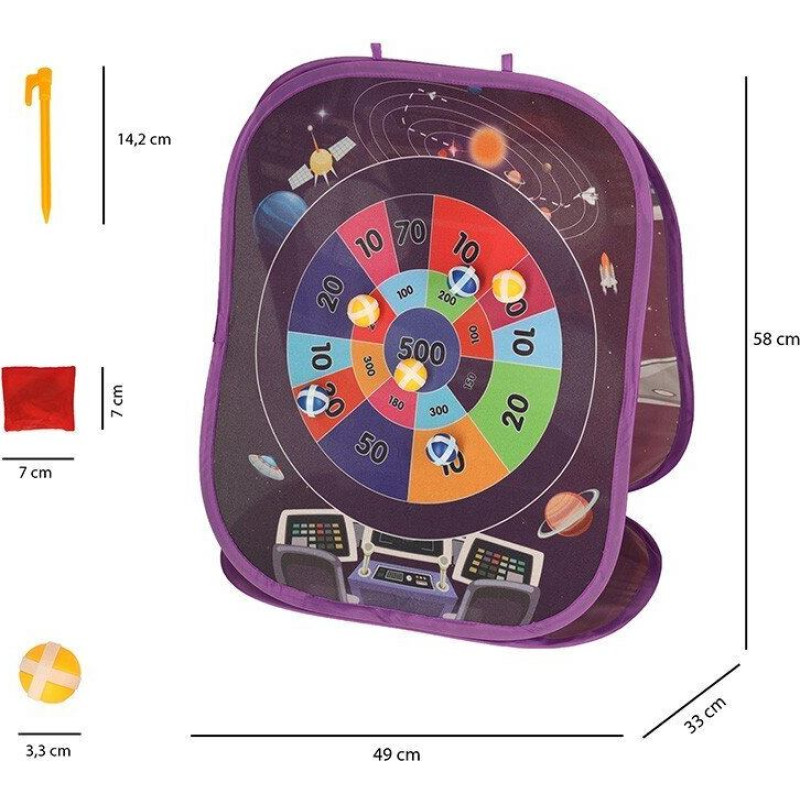 Veiklības spēle divi vienā – šautriņas un maisa mešana. Lieliska izklaide, kas sagādā daudz prieka gan bērniem, gan pieaugušajiem – ļoti ieteicams spēlēt kopā. Vecums: no 3 gadiem. Ruļļa izmēri: Izmērs: 58 cm x 49 cm x 33 cm.