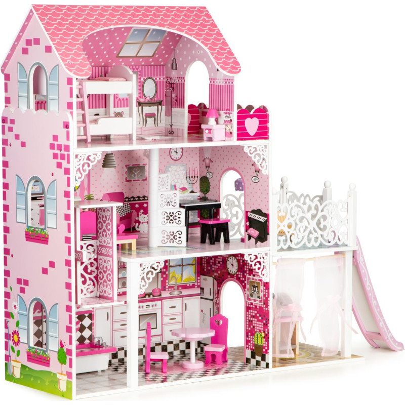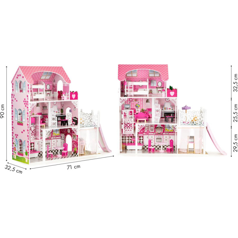 Ecotoys Wooden Dollhouse with Elevator XXL and Slide ECOTOYS