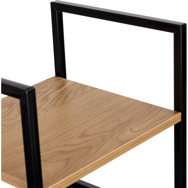 The shelves are made of MDF board covered with wood-imitating veneer . Their dimensions of 23.5 x 29 cm will accommodate everything you like to have at hand. The distance between the shelves is 31 cm. The shelf frame is made of powder-coated metal , its legs are finished with special feet that protect the floor from scratching. The frame is made of square profiles with a side of 12 mm.